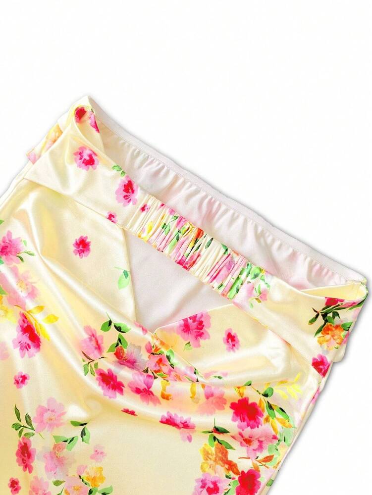 This women's strapless floral maxi dress features a slim-fit, bodycon design with a natural mid-waistline, creating an elegant silhouette. Crafted from a slightly stretchy fabric blend (92% polyester, 8% elastane), it offers comfortable wear while maintaining its shape. The vibrant all-over plant print adds a lively, multicolor appeal, ideal for garden parties, street outings, or summer events like Pride Month and Eid celebrations. With its backless detail and flowing long length, this dress combines casual ease with a sexy edge. Easy to care for with machine wash instructions, it’s perfect for vacation, beach, or formal occasions.